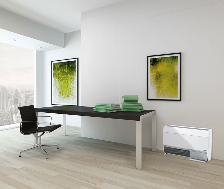 Airwell CAO 580 kan placeras stående på golv eller placeras med konsoller uppe på vägg. Utblåset kan vid behov flyttas från ovansidan till övre framsidan av aggregatet. En inbyggd termostat styr aggregatets kompressor av och på vid önskad temperatur, aggregatet har två fläkthastigheter.