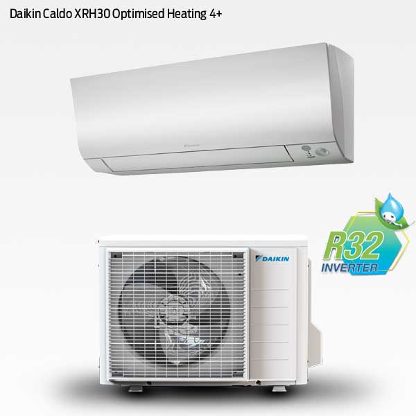 Daikin Caldo XRH30 är optimerad för hög värmeeffekt vid låga utomhustemperatur och hög verkningsgrad i alla lägen. Inomhusdelen FTXTM30N har ett högt luftflöde och är otroligt tystgående, upplevs som mindre än halva ljudnivån jämfört med sina konkurrenter vid samma luftflöde. Den har också en fläktlogik som fungerar optimalt och i automatik-läge ger den alltid optimalt luftflöde.
