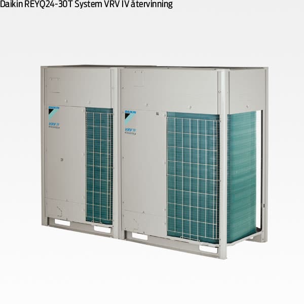 Daikin REYQ24-30T System VRV IV har en helt integrerad lösning med återvinning för maximal verkningsgrad och upp till 8 i COP! Den täcker en fastighets alla klimatbehov från en enda anslutningspunkt.