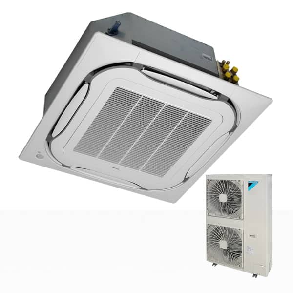 FCQHG100F Daikin högeffektiva rundblåsande takkassett med 360° luftutsläpp ger jämnt luftflöde och konstant temperatur.