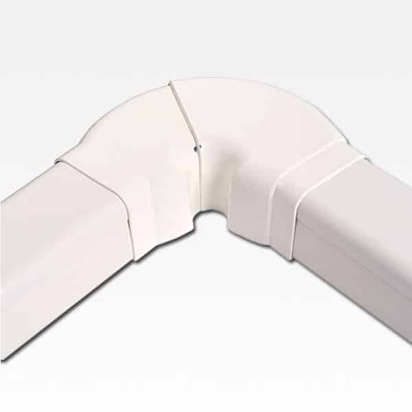 Justerbar vinkel 45°-135° ClimaLine 80, ställbar omslutande planvinkel, möjliggör snygg installation vid ojämn rörböj, passar Climalines kanal med vanligt lock och omslutande lock.