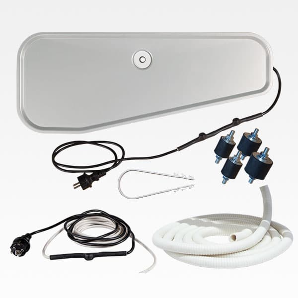 Climaco Pancake 1 dränerings-kit är det bästa systemet för kondensvatten du kan hitta idag. Det drar mindre ström och klarar sig utan att frysa ned till riktigt låga utomhustemperaturer. Dräneringstråget har en integrerad värmematta som styrs i ett eller två steg med två av varandra oberoende termostater.