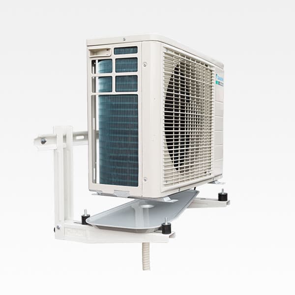 Värmetråget är enkelt och snyggt att montera. Det blir nästan osynligt och ser ut som en integrerad del av utomhusdelen.Man lägger tråget mellan utonhusdelen och upphägningen. Det passar på marknadens alla markstativ och väggkonsoler.