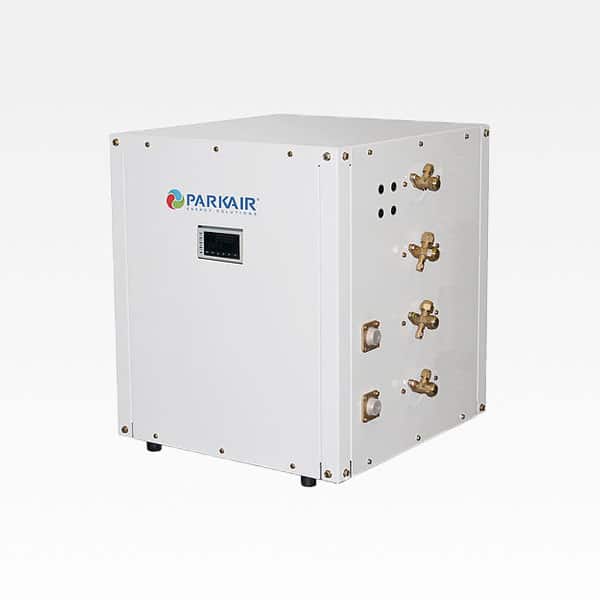 Parkair ACW9/9 Dual split är en vattenkyld kondensordel som kan ansluta två inomhusdelar. Kombinerad med en av Parkairs passande inomhusdelar levererar en sammanlagd kyleffekt på 3.71 kW