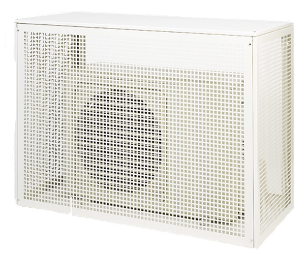 Skyddburen skyddar utsatta utomhusdelar mot skadegörelse, nederbörd och vind utan att påverka aggregatets prestanda.