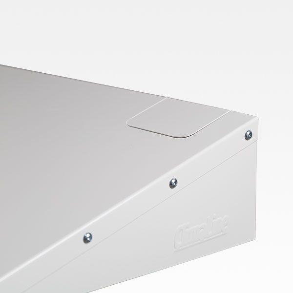 - Hållbar, tillverkad i galvaniserad plåt, pulverlackerad.
