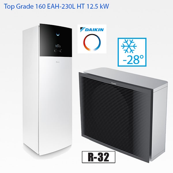 Det nordiska klimatet är ofta tufft och krävande. Top Grade 160EAH230 HT producerar 70°C framlednings-temperatur vid -15°C utomhustemperatur samt 65°C vid -28°C. Prestanda som är helt enastående och visar att Daikin leder utvecklingen av värmepumpar.