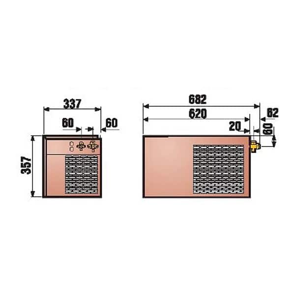 - Kondensor-enhet som hängs upp på vägg utomhus eller i utrymme med god ventilation.