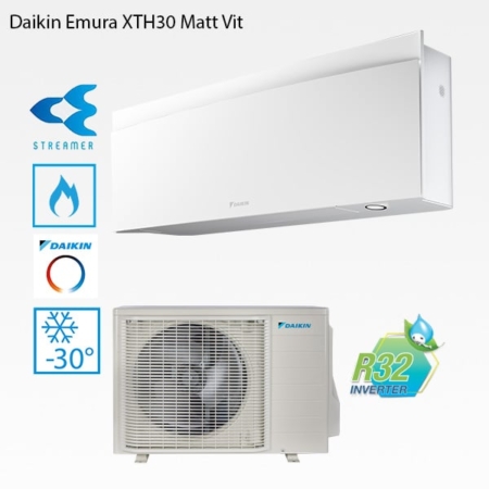 Daikin Emura XTH är den perfekta luftvärmepumpen för dig som vill kombinera design, energieffektivitet och smart teknik. Eftersom den erbjuder en optimal inomhusmiljö året runt, anpassar den sig automatiskt för att ge dig maximal komfort. Med sina avancerade funktioner och eleganta design är det ett av de mest stilrena och effektiva systemen på marknaden. Därför är detta ett utmärkt val för dig som vill ha både estetik och funktionalitet.